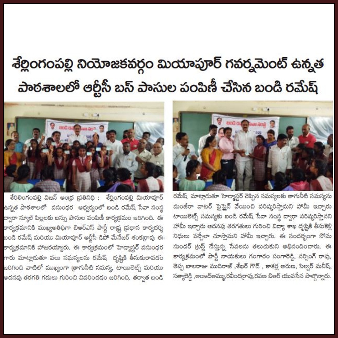 It is in the year 2016 January, Telangana Rastra Samiti (TRS) Party President Shri Kalvakuntla Chandra Sekhar Rao having known the above activities carried out by me. I having inspired by the ideologies of Sri K.Chandra Sekhar Rao and Shri K Taraka Rama Rao joined in TRS party.